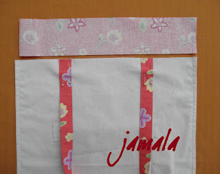 Na základ používám kaliko, tedy obyčejnou nebělenou bavlnu.. Základ tašky tvoří pruh látky 83 x 36 (42 cm na širší tašku) cm přehnutý na polovinu. Ucho dělám určené k nošení na rameno a to 2ks 62 x 9 cm. Horní lemování je v š. 7 cm (výsledné lemování je poloviční šířky). Kapsa 19,5 x 18,5 a výsledná velikost je 18 x 17 cm. Dělám ji dvojitou, do horní části dám proužek vliselínu a v dolní části nechám otvor na otočení. Rožky je možné šít bez odstříhávání takto nebo takto. Nevytahují se a zůstanou kolmé. Dvojitá je proto, že někdy kapsu šiji jako patchworkovou, ale lze ušít i obyčejně, nahoře se založením jako třeba u vyšívané. Poutko stříhám 3,5 cm široké