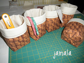 Potřebovala jsem nějak zorganizovat zmatek v dílně. Rozhodla jsem se pro jednoduché látkové košíčky. Látku jsem stříhala ve velikosti 35 x 24 cm. Protože na vnitřní látku nebylo možné zažehlit výstuhu, podlepila jsem lícovou látku sakonem, tahle výztuha nevytlačí do látky žádné vzorování a dobře drží. Někdo nedoporučuje na lepit na líc, ale pro košíčky nevidím problém. Nejdříve jsem sešila látky po dlouhém švu, a pak spojila v nohavici: