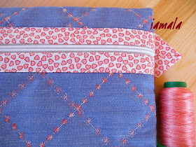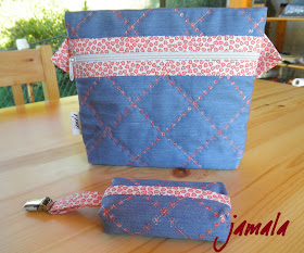 Opět kosmetické kabelky a obaly, abych splatila své "dluhy". Před časem jsem dostala tašku různých sponek, knoflíků a dalších nezbytností k šití. A tak jsem na oplátku ušila kabelku a obal na kapesníky. Materiál je něco jako riflovina, která pamatuje moje mnohem mladší roky. Tentokrát jsem vynechala vlizelín použila pouze tři vrstvy. Návod na kabelku je tady.