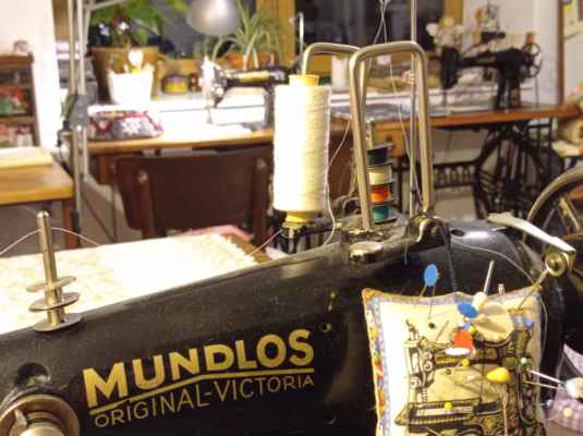Není to pro mne žádná novinka. Už dříve jsem quiltovala na starší průmyslové Minervě. Další průmyslový stroj je můj Mundlos. I to je stroj průmyslový. Nejednou jsem zájemkyním o quiltování na šlapacím stroji vysvětlovala, že můj stroj je stroj krejčovský, tedy průmyslový s delším ramenem. Domácí šlapací stroje měly vzdálenost těla od jehly max. 20, spíše 17cm.