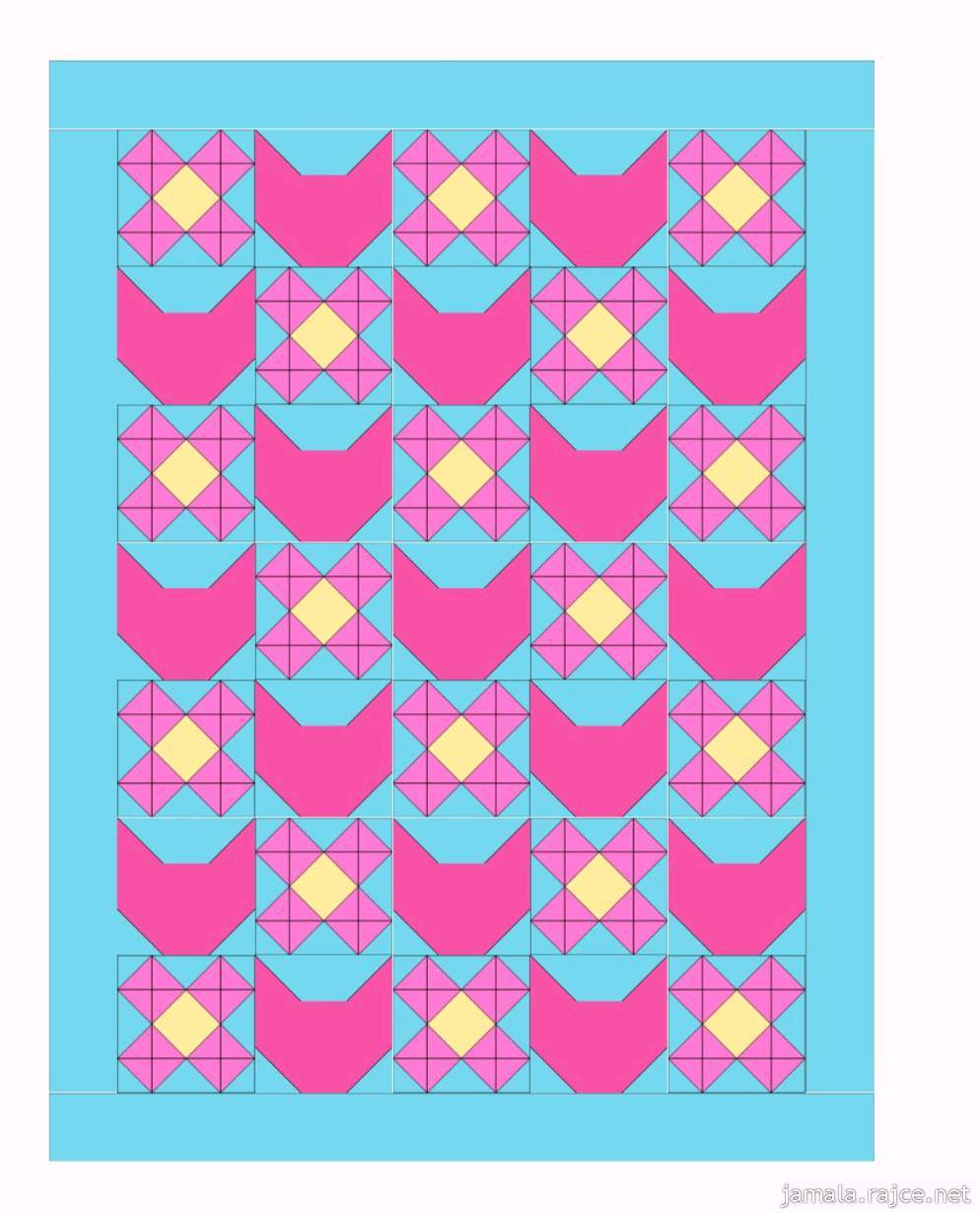 Návrh vznikl v programu QuiltCat a deka měla několik variant, až se ustálila jen na kočkách a srdíčku. Vrátila tak do hry riflovinu, kterou jsem se v konečné fázi rozhodla ozdobit svazováním a našitými knoflíky z košil použitých na dece. TADY návod jak na to a přidala jsem do článku i nové video. Kočičky jsem prošila ručně perlovkami nepravidelně jak to přišlo. Na svazování jsem použila bavlnky mouline.